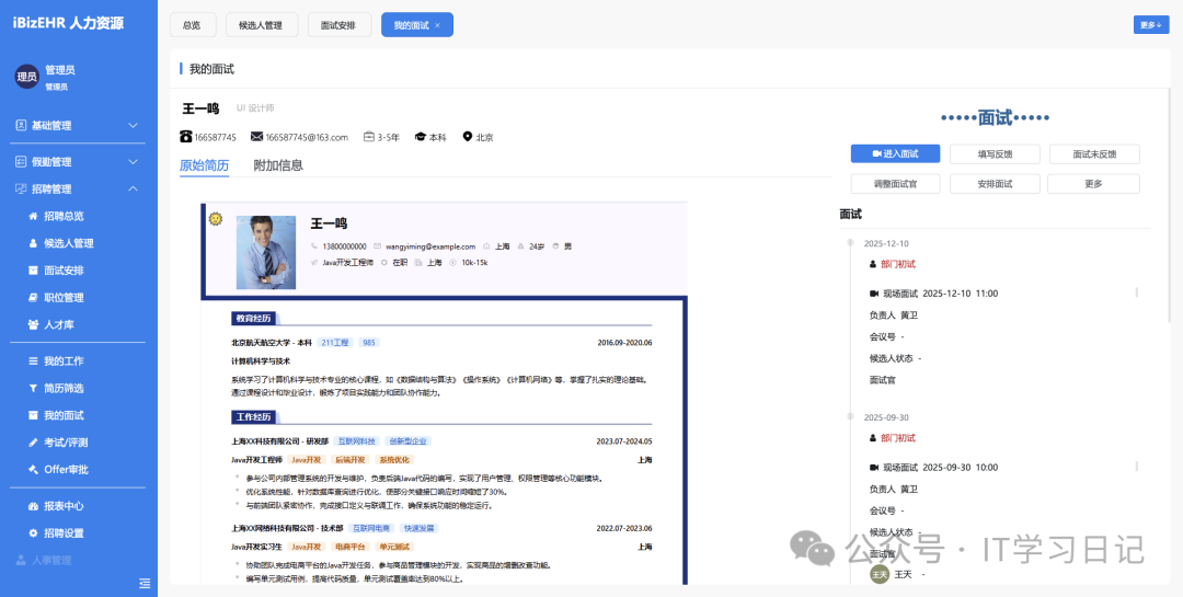 • 简历筛选、面试安排、录用审批