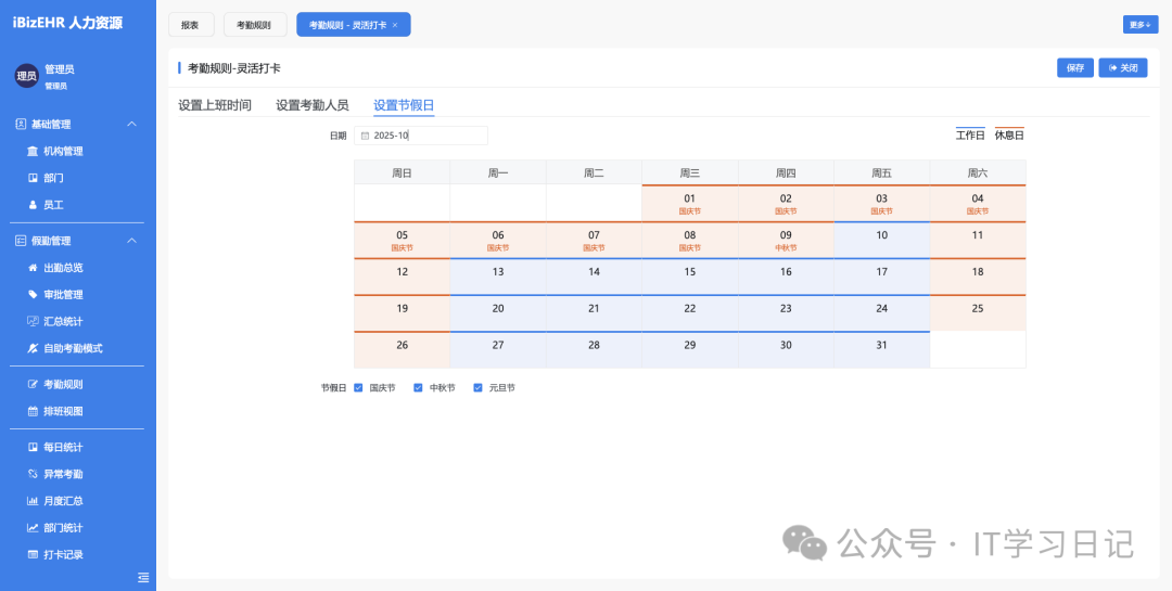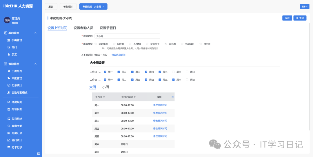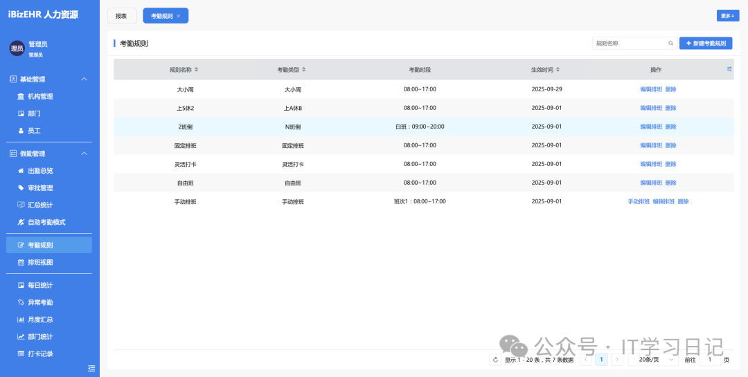 • 排班与排班模板:支持复杂班次与轮班规则。