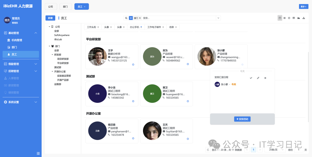 [点晴永久免费OA]一款开源免费的人力资源管理系统,支持招聘、人事、薪资、绩效全方位管理