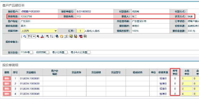 以ERP报价单为例做一个修改申请,修改联系信息和参考单价。