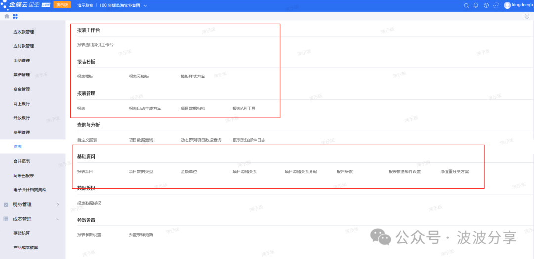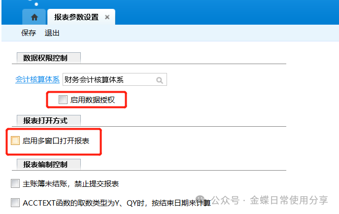 1报表【业务场景】:财务报表平台,基于类EXCEL报表编辑器,通过快速报表向导、灵活的取数公式,帮助用户快速、准确地编制企业对外会计报表(如资产负债表、利润表、现金流量表)以及各类财务管理报表(如管理费用明细表)。【用户角色】:财务经理【功能菜单】:【财务会计】->【报表】​2基础设置2.1设置系统参数【业务场景】:报...