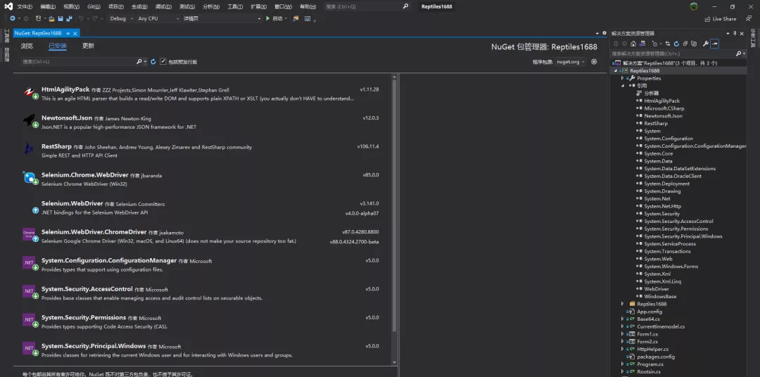 项目结构:为了方便使用,用的winform程序,附nuget包