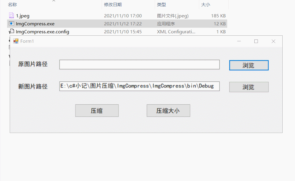 private void btnCompressSize_Click(object sender, EventArgs e){ ImgSizeCompress(10L); ImgSizeCompress(50L); ImgSizeCompress(70L); MessageBox.Show("成功");}
