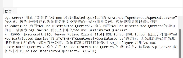 使用完成后,关闭Ad Hoc Distributed Queries: