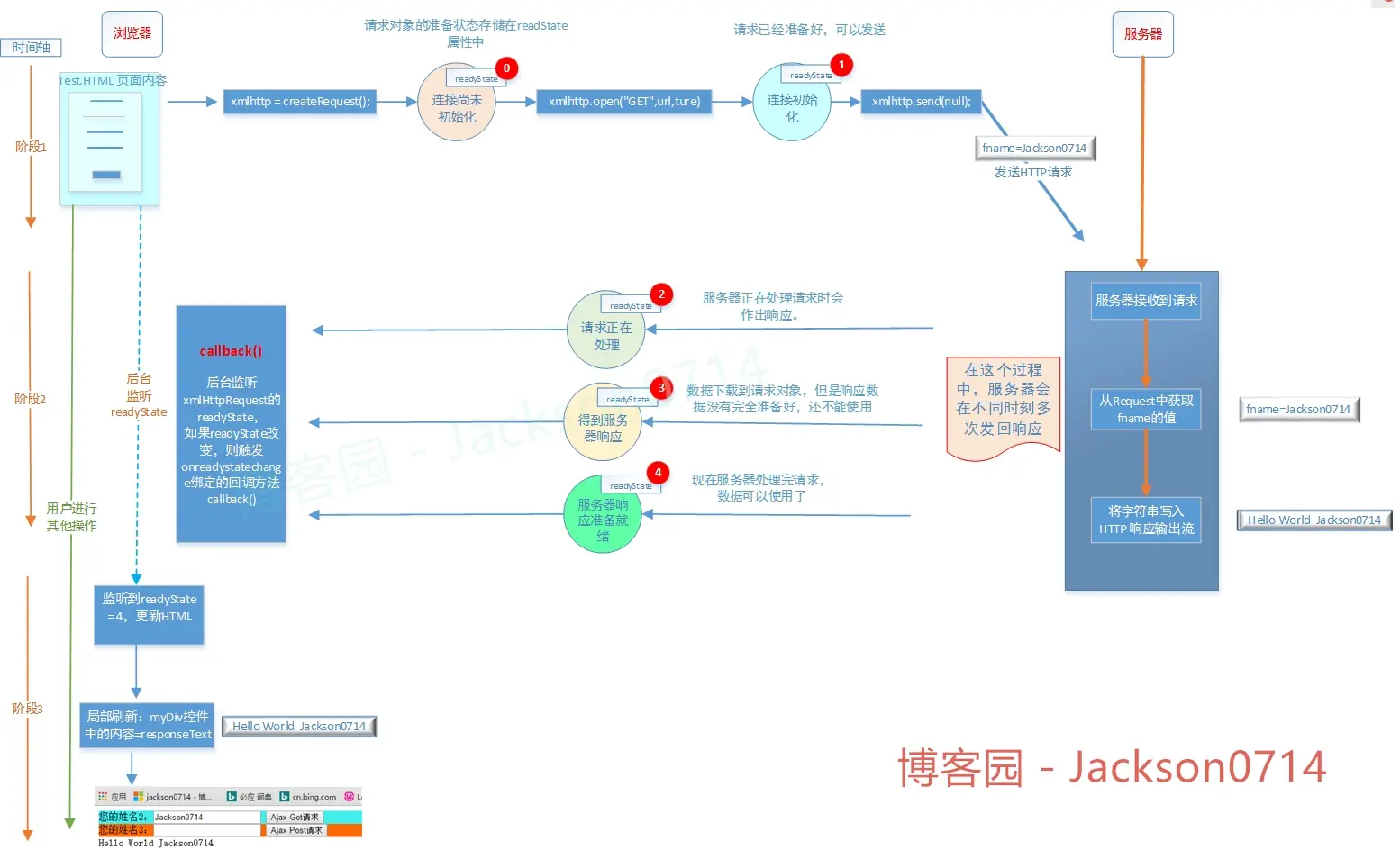 var xmlhttp = createRequest(); function testGet() { var fname = document.getElementById("testGetName").value; xmlhttp.open("GET", "Test.ashx?fname=" + fname + "&random=" + Math.random() , true); xmlhttp.onreadystatechange = callback; xmlhttp.send(null);} function testPost() { var fname = document.getElementById("testPostName").value; xmlhttp.open("POST", "Test.ashx?" + "&random=" + Math.random() , true); xmlhttp.setRequestHeader("Content-Type", "application/x-www-form-urlencoded;charset=UTF-8"); xmlhttp.onreadystatechange = callback; xmlhttp.send("fname="+fname); } function createRequest() { var xmlhttp; if (window.XMLHttpRequest) { // code for IE7+, Firefox, Chrome, Opera, Safari xmlhttp = new XMLHttpRequest(); } else { // code for IE6, IE5 xmlhttp = new ActiveXObject("Microsoft.XMLHTTP"); } return xmlhttp} function callback() { if (xmlhttp.readyState == 4 && xmlhttp.status == 200) { document.getElementById("myDiv").innerHTML = xmlhttp.responseText; }}这里有一点需要注意