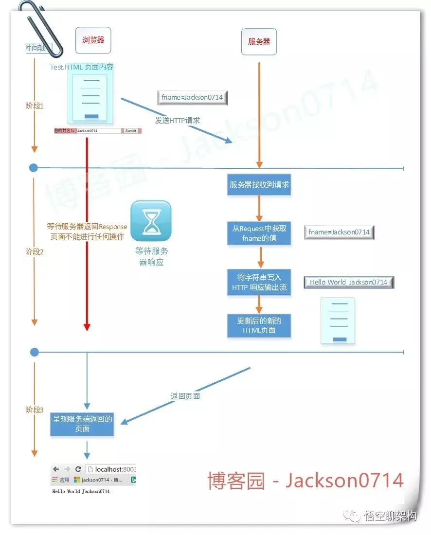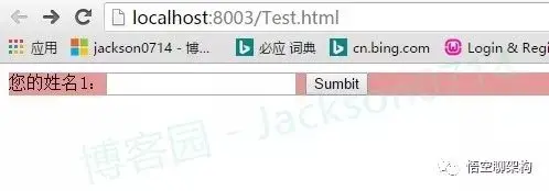页面不会刷新,在最下面显示 "Hello World Jackson0714"