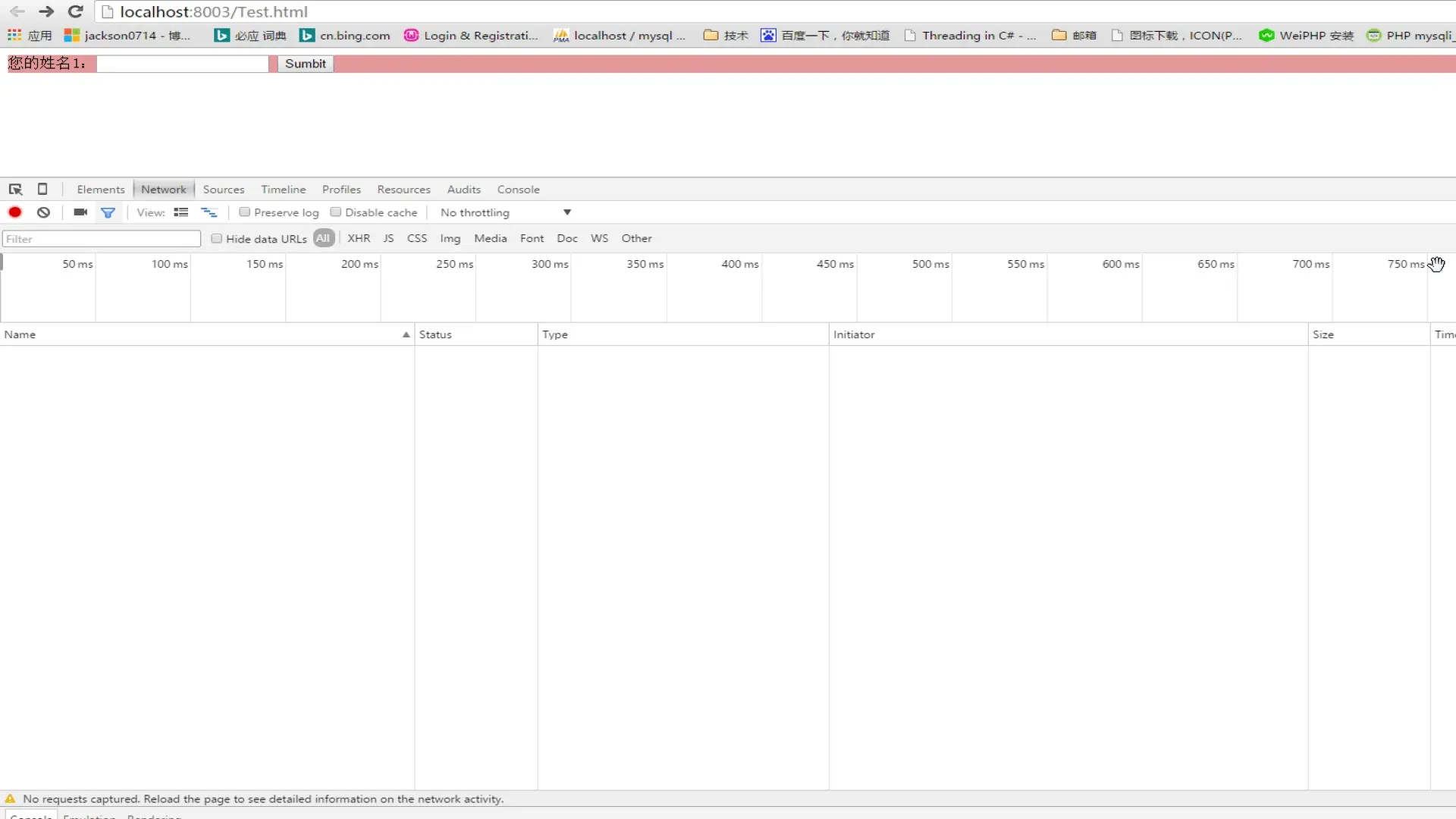 <form id="form1" action="Test.ashx" method="get"> 您的姓名1:<input type="text" name="fname" size="20" /> <input type="submit" name="submit" value="Sumbit"> </form>