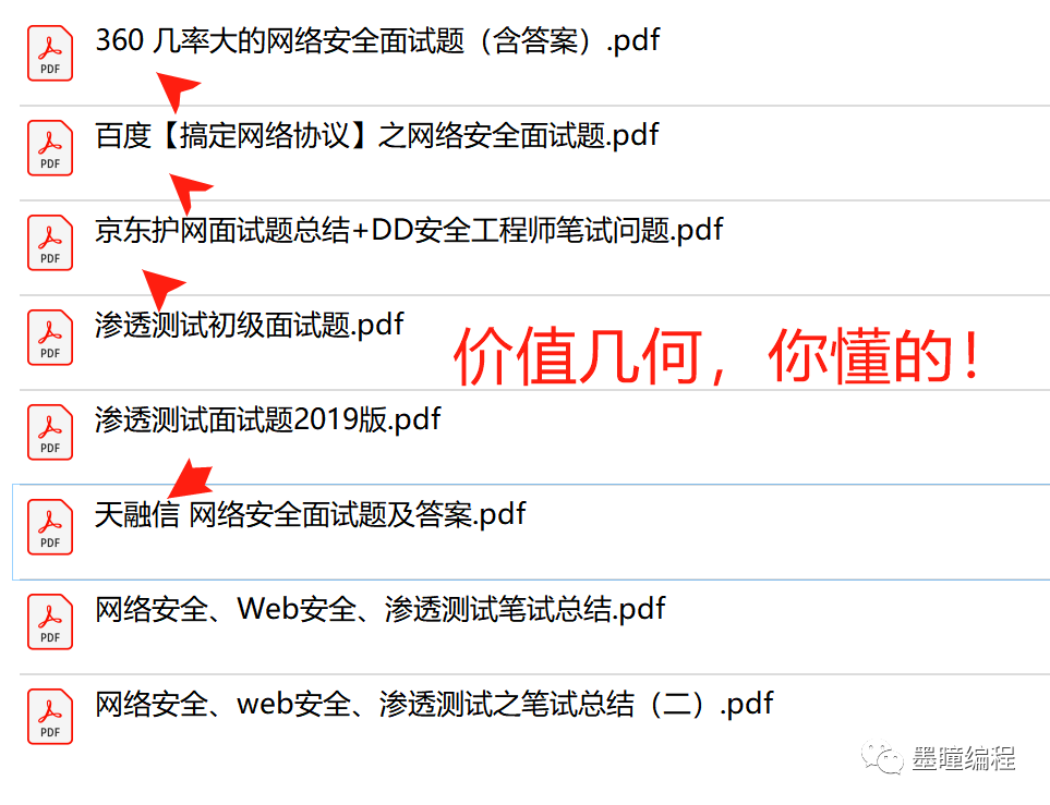 面试题资料 独家渠道收集京东、360、天融信等公司测试题!进大厂指日可待! 全部资料共282G,朋友们如果有需要全套网络安全入门+进阶学习资源包,可以点击免费领取~