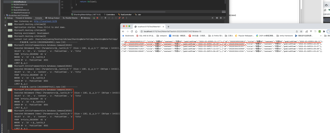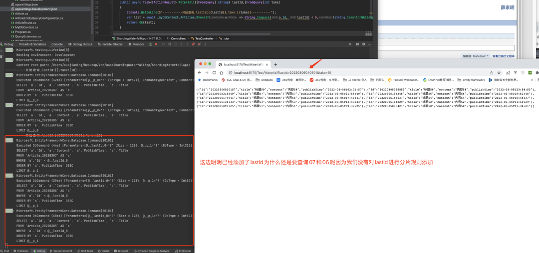 针对上述瀑布流的分页ShardingCore是这么操作的: