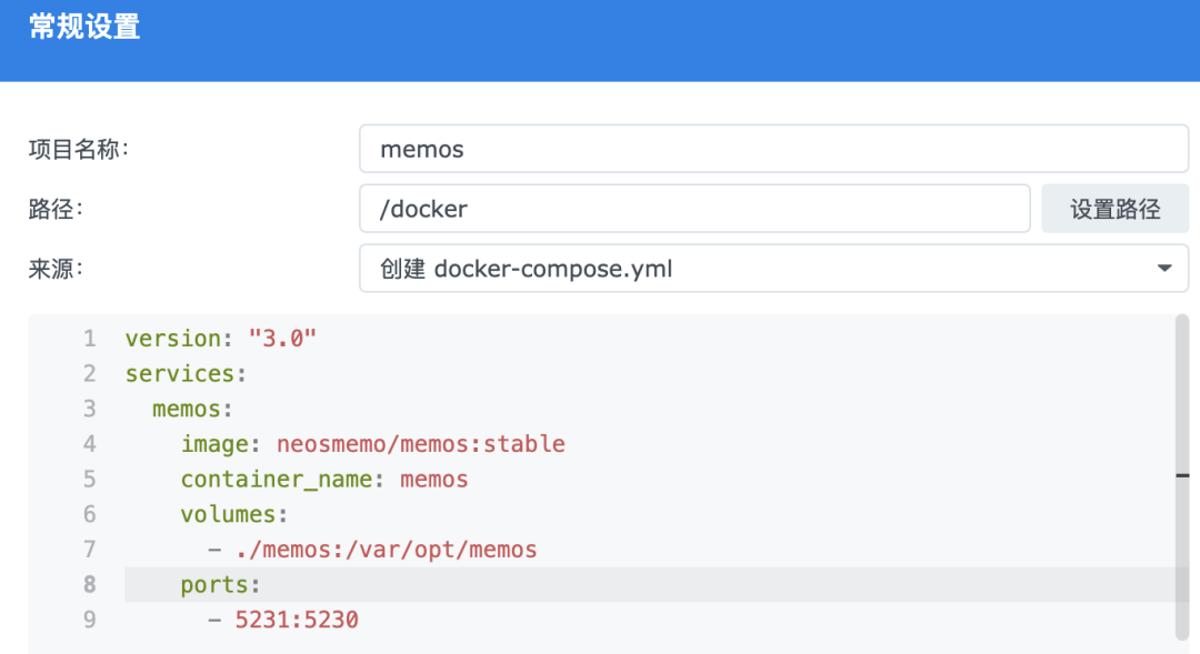 • container_name: memos:这里将容器名指定为 "memos"