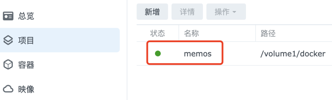 同样可以在Container Manager中发现新的memos容器被启动