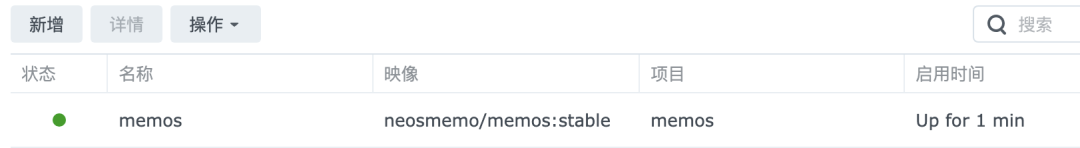 容器选项下,也能看到启动的memos容器