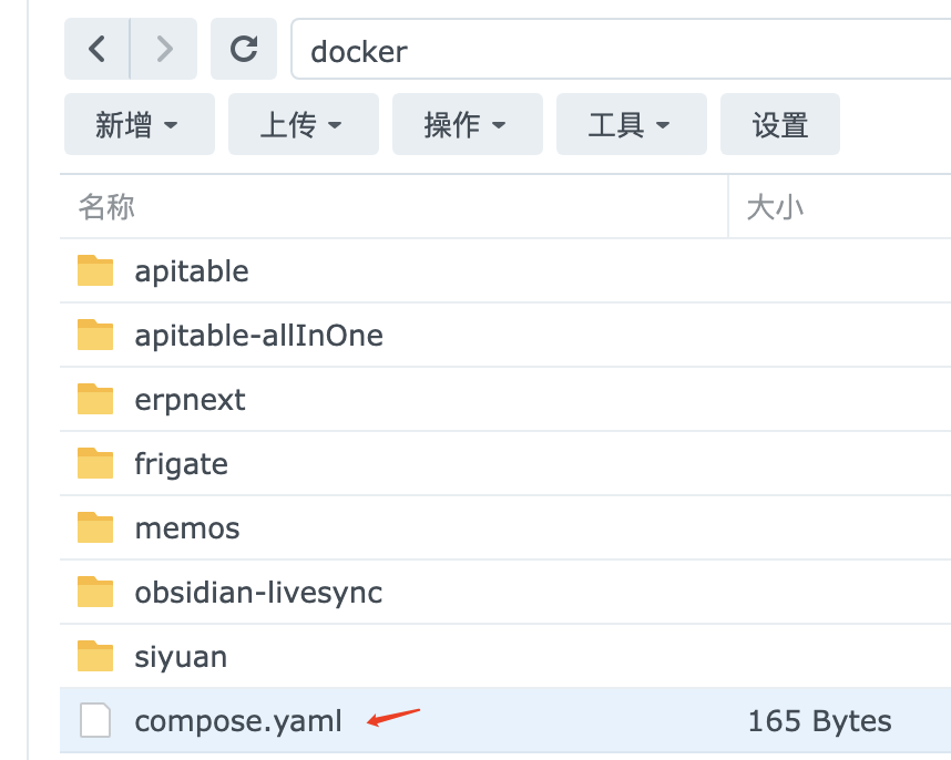 打开File Station的docker文件夹,有 一个新的yaml文件被创建,里面的内容其实就是前面那段docker-compose命令