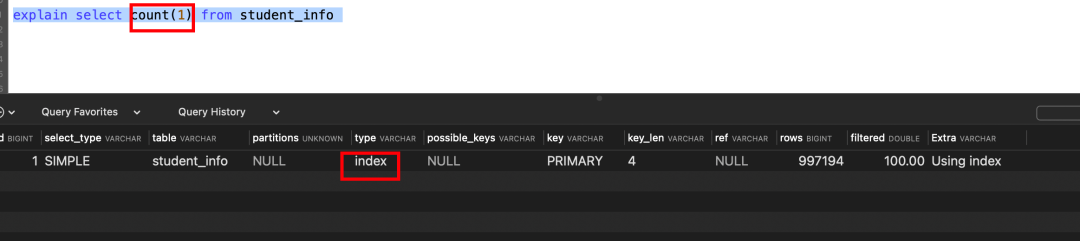 Using index:通过有序索引顺序扫描直接返回有序数据,这种情况即为 using index,不需要额外排序,操作效率高