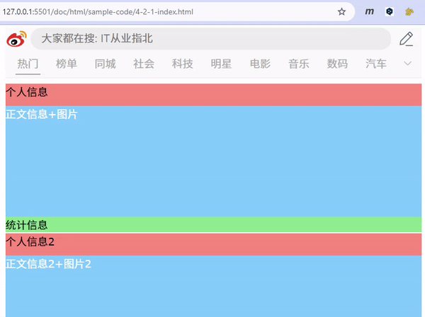 对比之下,基本上和前一块内容的 HTML 代码一样。而不一样的,则是下面的 CSS 样式。