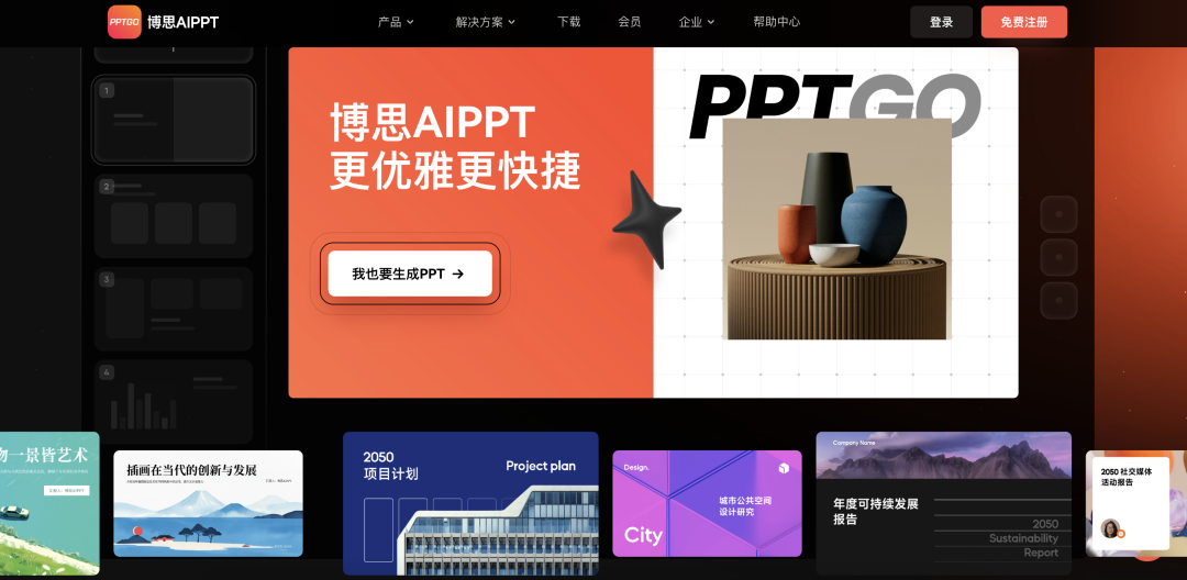 PPT生成:智能生成整个幻灯片,提升演示效果,适用于教学、商务等多种场景。