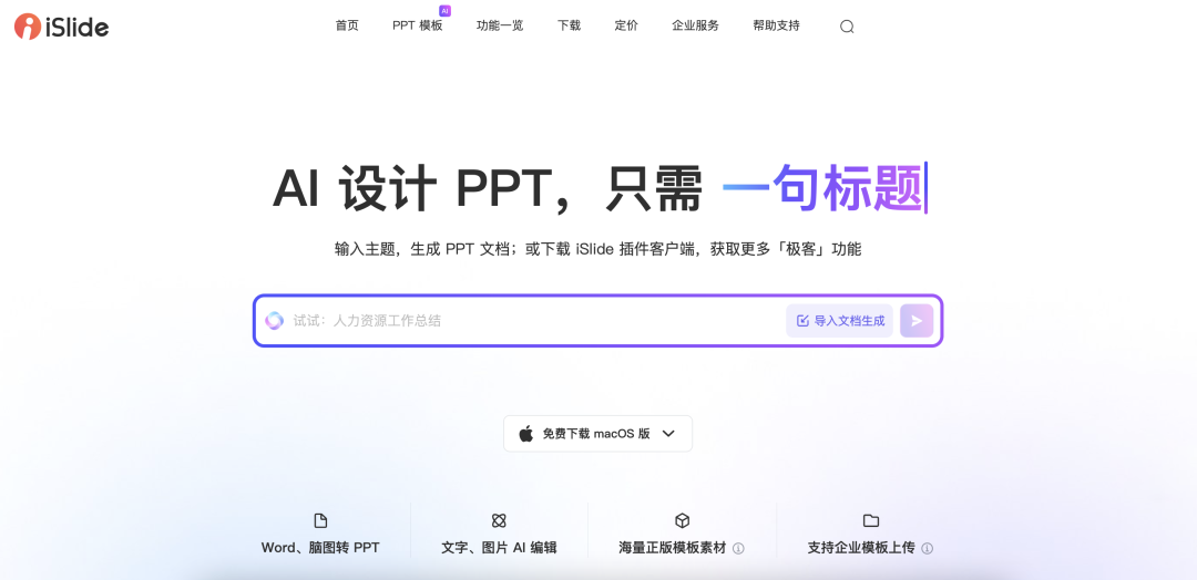 iSlide AI用户只需提供主题或大纲,iSlide Al就能快速生成逻辑清晰、设计美观的演示文稿,大大节省了设计和排版的时间。