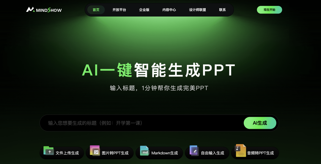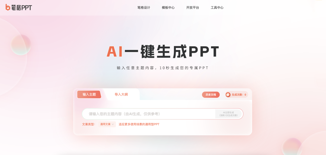 AI 一键生成 PPT:用户只需输入主题,AI 即可自动生成 PPT 框架。