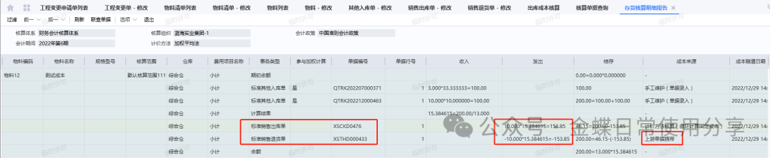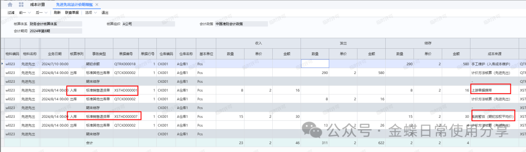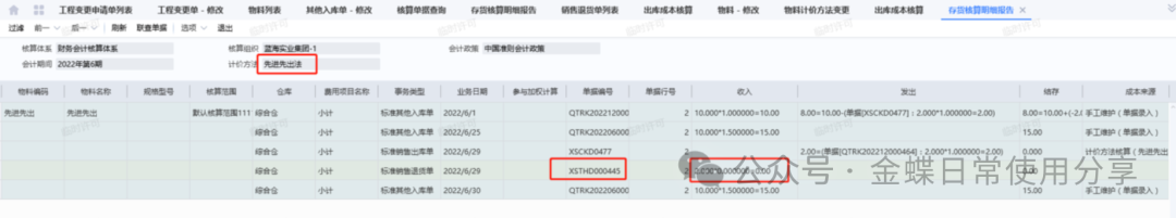 先进先出法下,不是从销售出库单/销售出库单到退货通知单等单据下推的销售退货单,无法取源单成本。根据计价方法也未能计算到成本,除了可以手动维护单据成本,也可考虑零成本单据自动取价/出库成本维护的方法维护成本。当销售退货单手动维护或者取到成本之后,销售退货单作为入库序列的方向,后续再次出库会从销售退货单进行出库计算成本,可查看先进先出法计价明细账。如下图,有两个退货单,退货单号XSTHD000001是从源单销售出库单下推,成本来源显示取源单成本。退货单XSTHD000007手工新增,无源单成本取值,本例测试勾选零成本取价,取期初加权价暂估成本。后续出库的时候,系统将这两个退货单作为入库序列进行了出库成本的扣减。