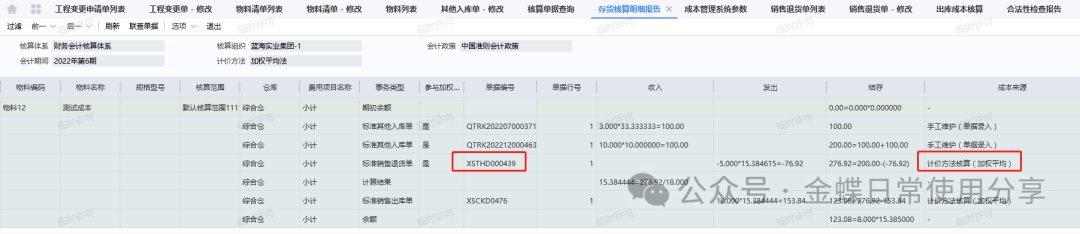 ① 计价方法是加权平均法或移动平均法,如下图中直接新增无源单的销售退货单(XSTHD000439)和销售退货单(XSTHD000445),取按照计价方法加权平均法或移动平均法计算出来的成本;