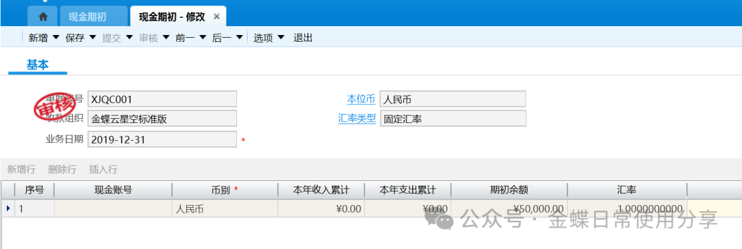4、初始化【业务场景】:期初录入在出纳管理系统进行日常业务处理之前,需要将企业的银行存款账户余额和库存现金余额录入系统中,以便后续系统可以在此基础上继续登记日记账、余额表,正确反映企业任意时点实际的存款和现金头寸。 【用户角色】:出纳 【功能菜单】:【财务会计】->【出纳管理】->【初始化】