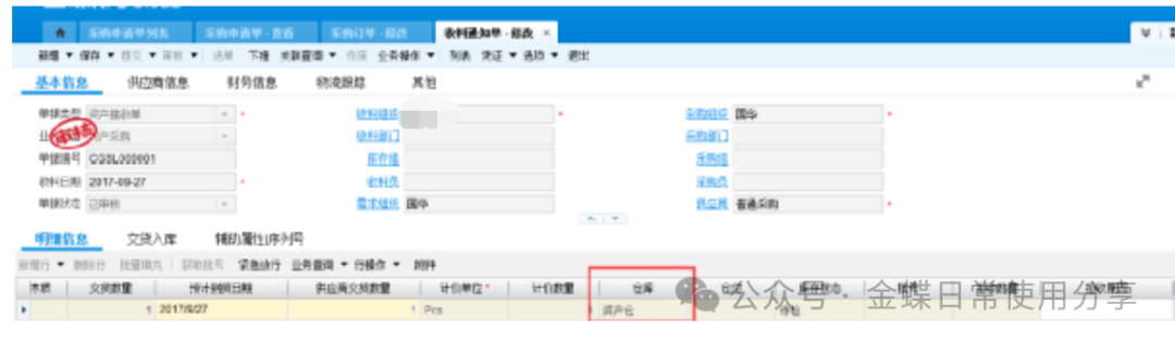 2业务数据2.1创建物料【业务场景】:企业用户资产物料的建立 【用户角色】:管理会计 【功能菜单】:【基础资料】->【主数据】->【物料】 【操作说明】:注:只有物料属性为资产的物料才能做资产申请单。 系统默认资产物料不入库,如果客户实际业务需要入库,那么在新建资产物料时一定要允许库存。 ![]() 2.2 资产申请单(可选)【业务场景】:企业用户新增资产提交申请 【用户角色】:企业用户 【功能菜单】:【资产管理】->【固定资产】->【资产请购】->【资产申请单】 【操作说明】:资产需求采购部门在系统中创建资产申请单,填写需求组织及部门、所需资产物料(物料属性为资产),数量及到货日期并提交审核。 ![]() 2.3采购申请单【业务场景】:企业用户新增资产提交采购申请单 【用户角色】:采购员 【功能菜单】:【采购管理】/【资产管理】->【采购申请-采购申请单】 【操作说明】:当需求人员做了资产申请单的情况下,首先调整采购申请单的单据类型为资产采购申请单,再通过选单的方式创建采购申请单,选择采购组织、录入推荐供应商(可选)提交审核。 ![]() 若需求人员不做资产申请单,可以直接创建采购申请单来达到申请的需要,单据类型为资产采购申请单,手动填写资产申请组织及部门、采购组织、物料、数量、到货日期、及建议供应商(可选)并提交审核。 ![]() 2.4 采购订单【业务场景】:企业用户新增采购订单 【用户角色】:采购员 【功能菜单】:【供应链】->【采购管理】->【采购申请】->【采购申请列表】->【下推采购订单】 【操作说明】:采购员填写单价并提交审核。 ![]() 2.5采购收料【业务场景】:企业用户进行采购收料操作 【用户角色】:采购员 【功能菜单】:【供应链】->【采购管理】->【订单处理】->【采购订单列表-下推操作】 【操作说明】:采购订单下推收料通知单,若实际业务需要入库且该资产物料设置了允许库存,则填写仓库,否则直接提交审核,没有入库动作的直接看2.8。 ![]() 2.6采购入库【业务场景】:企业用户进行采购入库操作 【用户角色】:采购员 【功能菜单】:【供应链】->【采购管理】->【收料处理-收料通知单列表】->【下推操作】 【操作说明】:提交审核 ![]() 2.7资产出库【业务场景】:企业用户需要资产出库 【用户角色】:仓储员 【功能菜单】:产品路径:【供应链】->【库存管理】 ->【杂收杂发】->【其他出库单】 【操作说明】:已入库的资产在领用时需要进行出库处理,新增其他出库单,更改单据类型为资产出库,填写领用部门、物料编码、实发数量、发出仓库等信息并提交审核。 ![]() 2.8资产卡片【业务场景】:企业用户需要新增资产,资产信息以卡片的形式记录 【用户角色】:管理会计 【功能菜单】:【资产管理】->【固定资产】->【日常管理】->【资产卡片】 【操作说明】:新增资产卡片,选择正确的资产组织及货主组织(资产组织和货主组织可以不相同即管理资产的组织与实际所有权所属的资产组织不一致,资产组织必须有资产职能,货主组织可以没有资产职能。),选择资产类型后再点击“选单”关联采购收料单或其他出库单。 ![]() 根据实际需求填写卡片,若一个使用组织使用多个会计政策,则需要在每种政策下,填写财务信息。 字段后有红点的为必录信息,录入后提交审核。 3固定资产日常管理3.1固定资产新增【业务场景】:企业用户需要新增固定资产 【用户角色】:管理会计 【功能菜单】:【资产管理】->【固定资产】->【日常管理】->【资产卡片】 【操作说明】:资产卡片为私有基础资料,按照实际使用组织进行创建 注:按变动进行折旧是不可逆操作,请根据自身情况加以选择。 选定好对应的会计政策,有多个会计政策的组织,每个会计政策下都要录入一遍财务信息。 开始使用日期为实物资产的实际使用日期,建议早于或等于资产的入账日期,该字段为文本字段不参与实物的财务计算,但会影响累计使用时间。 入账日期是固定资产启用期间中的一天 财务信息页签下,各字段所代表的内容及注意点。