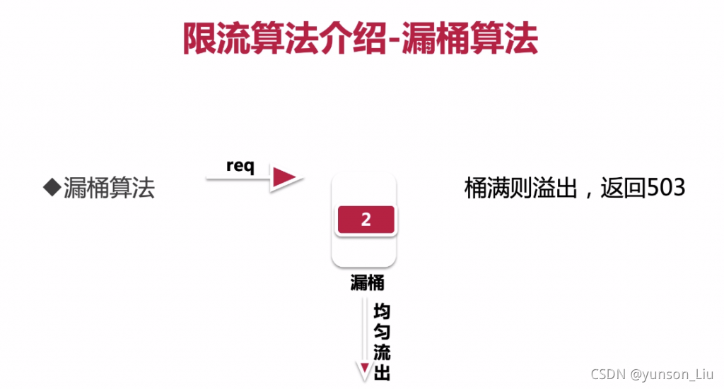 • 这个算法的核心是:缓存请求、匀速处理、多余的请求直接丢弃。