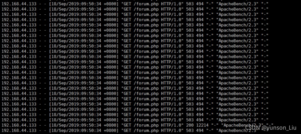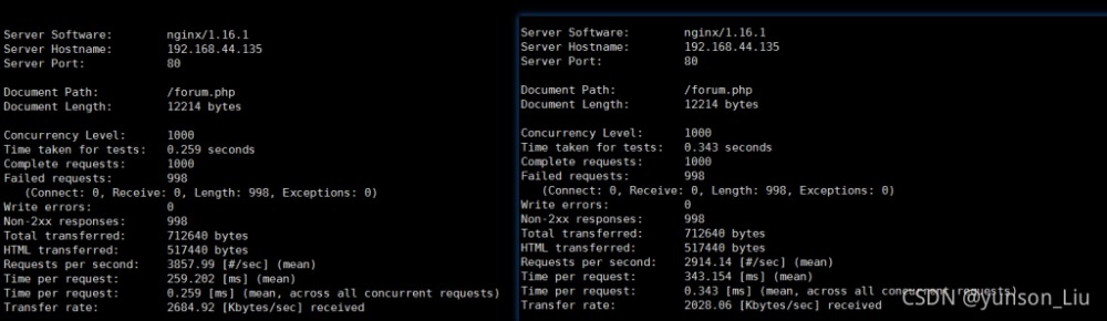 压测前后的对比,这里是压测工具是ab压测工具,具体用法看这篇文章