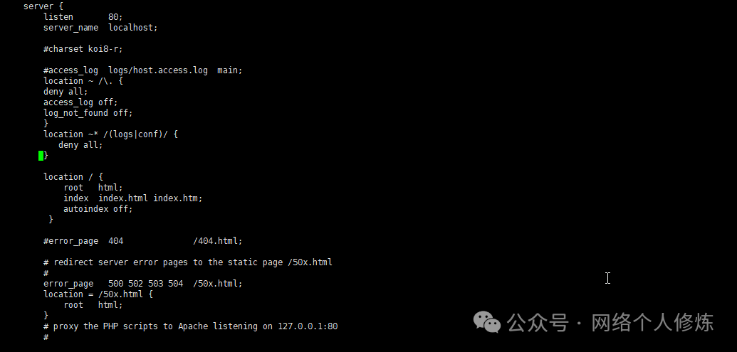 2. 禁止访问敏感文件 / 目录 通过location规则屏蔽敏感文件和目录: