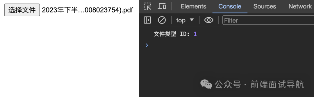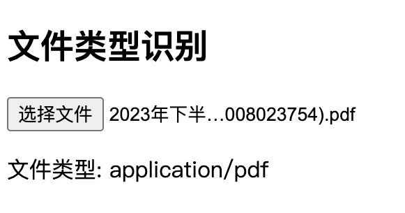 当我们使用 HTML 的 <input type="file"> 标签时,可以通过文件的 type 属性获取 MIME 类型: