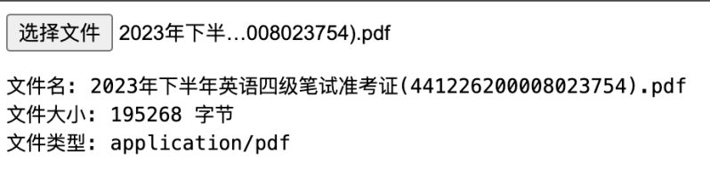 const fileInfo = `文件名: ${file.name}<br>文件大小: ${file.size} 字节<br>文件类型: ${file.type}`;