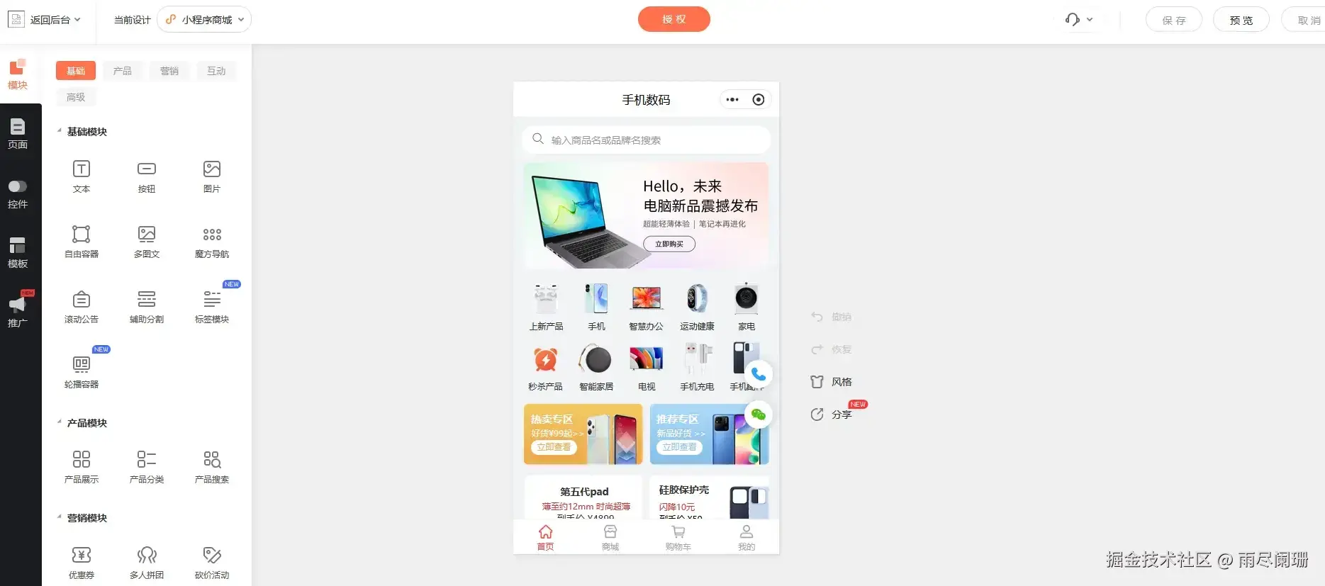 我的结论是,如果那么复杂的场景,物料拖来拖去,逻辑链上百个节点,不如cursor一句话... 这是我的黑历史,也是我的来时路转行前端:低代码熟练工最早受害者我2017年大学毕业,原本学的是Java,在南京面试并入职了一家公司做后端开发。 当时公司招聘了大量应届毕业生,我本以为是因为业务发展迅速,需要大量研发人员。然而入职后才发现,公司后端开发并不使用代码开发,而是通过公司自研的一个逻辑编辑器进行开发。这个编辑器采用拖拽节点、搭建逻辑链的方式来实现后端业务。我们平时写的一句代码,实际上就是一条逻辑链,独立的方法构成一个独立的父节点,节点之间再相互串联。之所以招聘这么多人,是因为公司离职率极高,每年大约只有20%的人能留下来。公司通过这种方式,逐年筛选出逻辑编辑器的熟练工。 我干了两个月后,实在无法适应,准备离职。但当时招聘季已经结束,只能暂时忍耐。转机出现在公司的低代码平台——它只支持后端开发,前端仍然需要编写代码。前端组也在招人,于是我谎称自己会前端,成功转到了前端组。但实际上,我当时只会一点Vue基础,完全不懂前端开发,只能从头学起。最终,我从后端彻底转成了前端开发。 在大半年后,我跳槽去了另一家公司。就在我准备离职时,公司其他部门的前端组也开发出了类似的低代码平台。我试用过,虽然非常难用,很多操作反人类,但公司也打算仿照后端的模式,每年招聘前端应届生,逐年筛选出熟练工。 可以说,我们这波人是国内最早被低代码迫害的那批开发者。因为我亲身经历过,所以我很明确地告诉大家:有些公司开发和推广低代码平台的目的,并不是为了提升业务效率,而是为了替换掉研发人员,转而使用一些廉价的低代码平台的熟练工! 这简直从根源上实现了节流,对他们来说也是增效。 开源之旅:构建我理解的低代码平台了解我的同学可能知道,我是低代码开源项目Mall-Cook和云搭的作者,既然我已受过低代码的迫害,那为什么还要开发低代码? 因为我想还原可视化拖拽搭建降本增效原本的魅力。 我的的研究很明确,就是开发普通人(产品、运营、不管会不会技术的普通人)在某些场景(H5、问卷、图片、商城等)能简单、快速搭建的工具(有用的才算工具,如果只是KPI产品,合格的软件我认为都不算) 五年磨一剑,三代铸巅峰我公司是一家做文旅的小公司,而公司的业务恰好是我低代码项目落地的最佳场景。 在过去的五年,我独立开发了三代低代码项目,在项目我都会开发完成后。都自荐接入公司的实际项目中,通过用户实际使用的反馈,不断的优化和扩展。 H5-Generate我自研第一代低代码平台,当时仿照鲁班花了3个月自己搞了一个H5生成器,用来搭建生成活动页H5。 最初的试水之作,现在看来很简陋、使用体验也一般,也没信心开源出来献丑。不过我接入公司文旅小程序,支持了我们当时拳头产品数百个活动页的搭建。 Mall-Cook自研第二代低代码平台,突破只能搭建H5的桎梏,支持搭建H5、小程序、APP任意端页面搭建。 开源地址: 链接 Mall-Cook旨在开发一个供运营、产品快速搭建商城的可视化平台。其实现了可视化页面搭建、组件流水线式标准接入、搭建页面多端生成(H5、小程序、APP)、运营/产品低学习成本维护等特点。 Mall-Cook是我承上启下的开发项目,在项目开发完成后,在当时我还是比较满意的。 所以把项目进行了开源,并向公司自荐由Mall-Cook替换掉H5-Generate,支持公司后续项目的可视化搭建需求 Mall-Cook在开源和公司都取得了很不错的成绩,真正让普通人去做了部分研发需求做的工作,真做到了我所希望的降本提效。 云搭自研第三代低代码平台,大成之作,云搭万物,触手可及! 云搭平台: 链接 开源地址: 链接 介绍文章: 链接 云搭是一款功能强大的可视化搭建解决方案,它支持零代码搭建小程序、H5、问卷、图文文章等多种应用,致力于提供一套简单、便捷、专业、可靠的多场景可视化搭建平台。 我愿景是让所有用户(无论会不会技术的普通人),使用云搭可以简单、便捷搭建各种应用。 平台功能