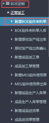 1.进入ERP系统之后,在左侧的功能菜单里下方可以找到“BOE定制”,点击后找到“正常加工”。