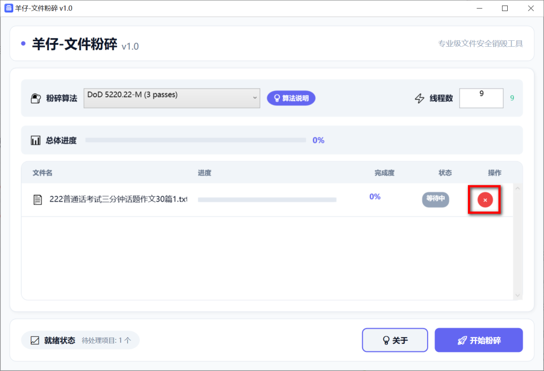 心中有数,实时可见:总进度、单个文件进度、处理速度、剩余时间……所有信息都实时显示在界面上,让你对粉碎过程了如指掌。