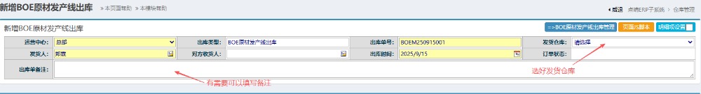 点晴模切ERP-BOE原材发产线出库流程