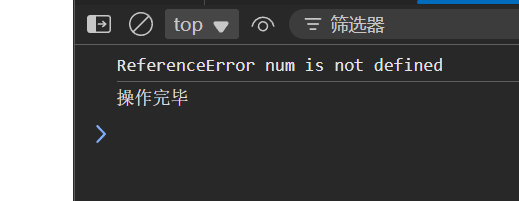 console.log(`异常类型=${e.name},异常原因=${e.message}`); //异常类型=ReferenceError,异常原因=num is not defined